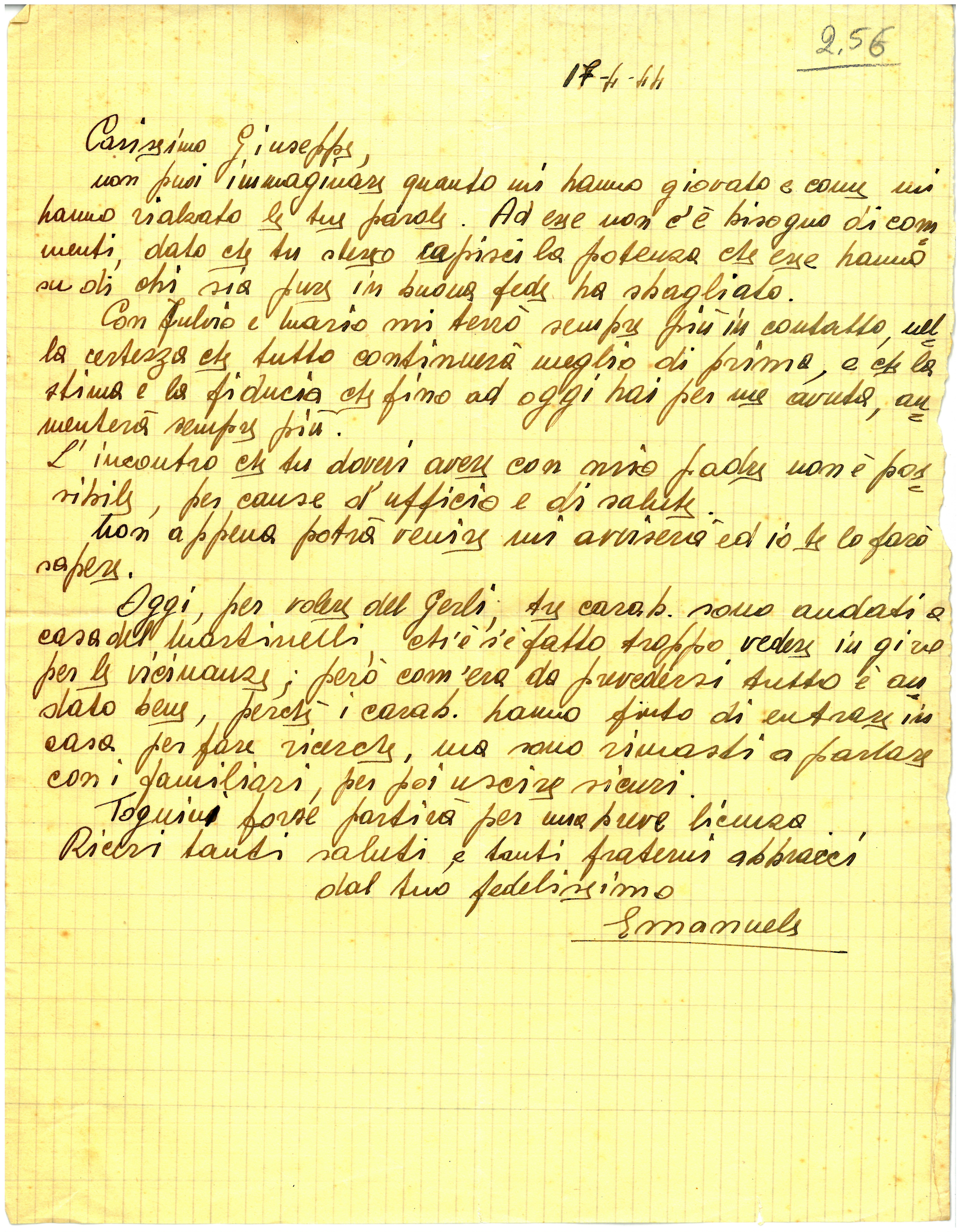 Apri file 3_44_2.17.pdfLet. al'indirizzo di "Carissimo Giuseppe" a firma Emanuele, s.l., 17.4.1944