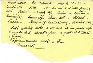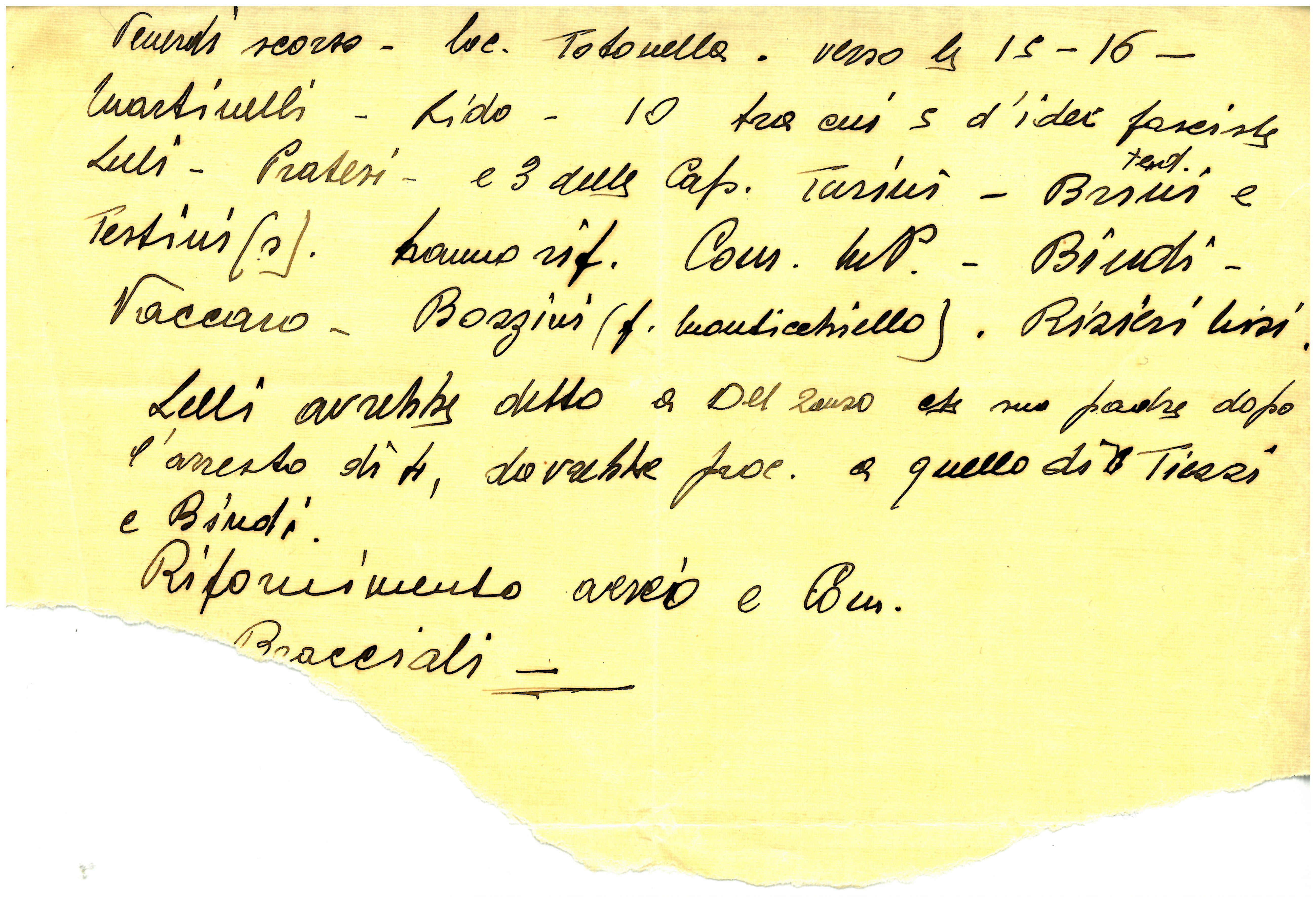 Appunti circa attività partigiana in loc. Totonella, a firma Bracciali, s.d.