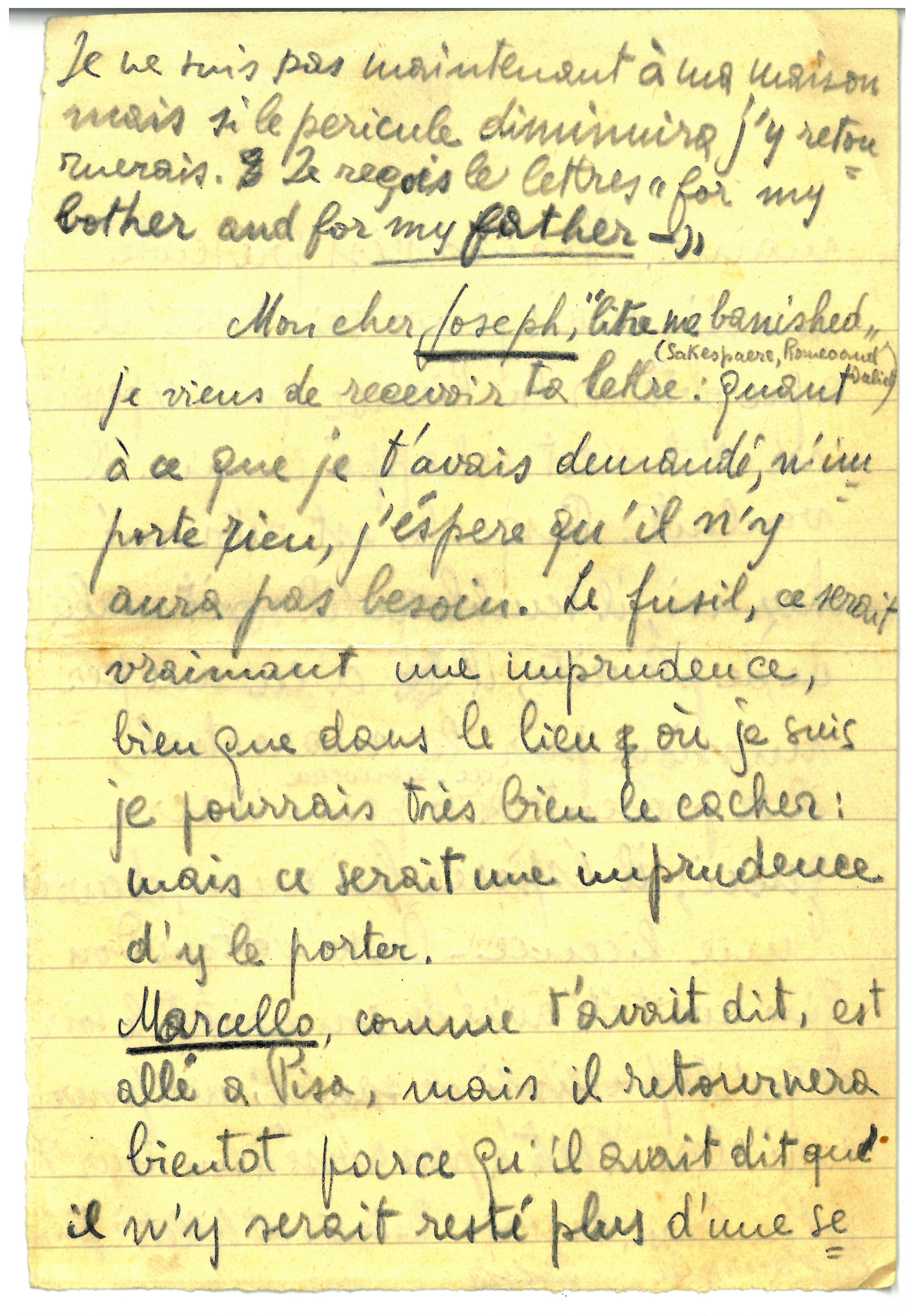 Let. al'indirizzo di "Mon cher Joseph" a firma Filip, s.l., s.d. (testo in lingua francese)