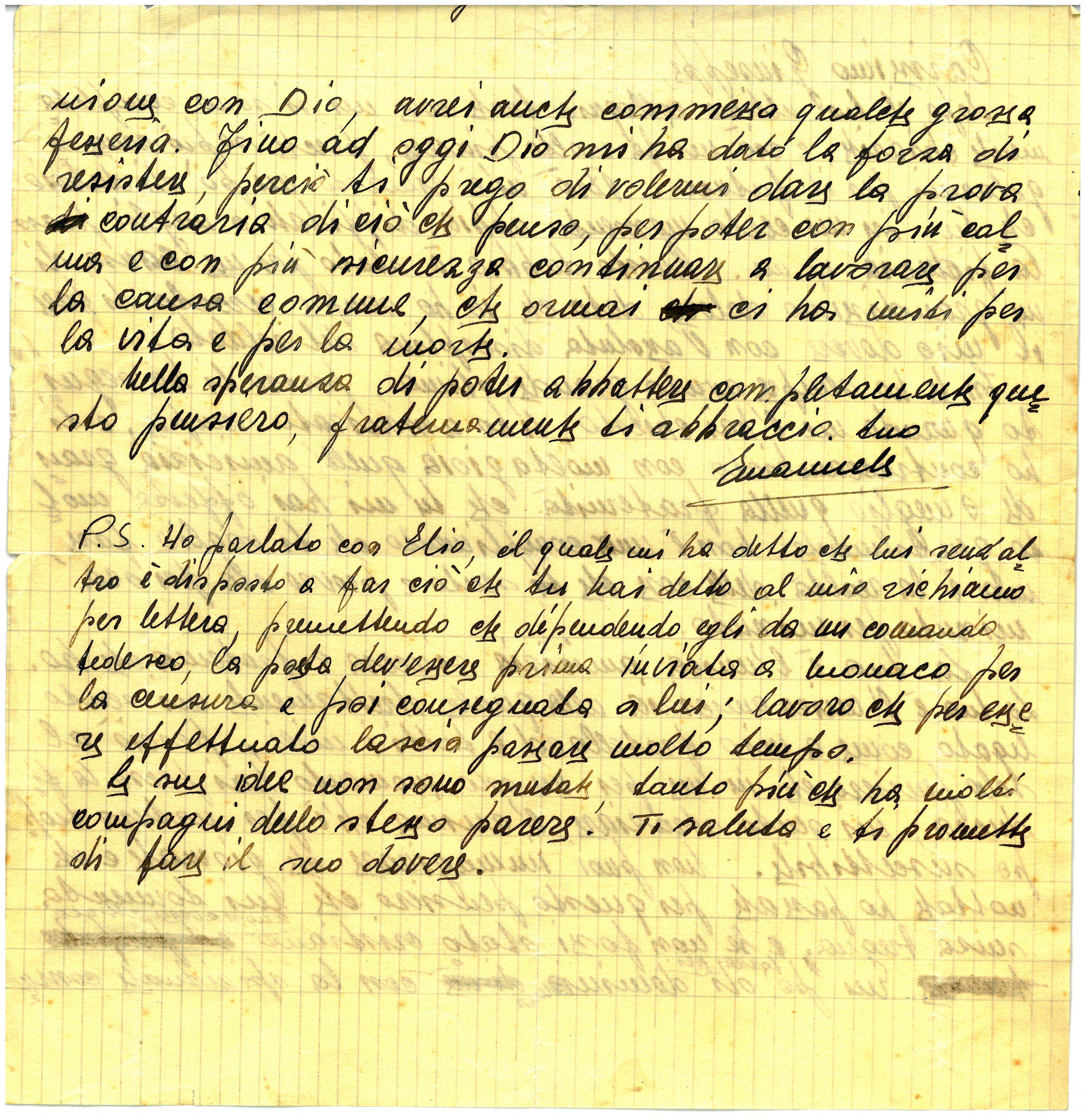 Let. al'indirizzo di "Carissimo Giuseppe" a firma Emanuele, s.l., s.d.