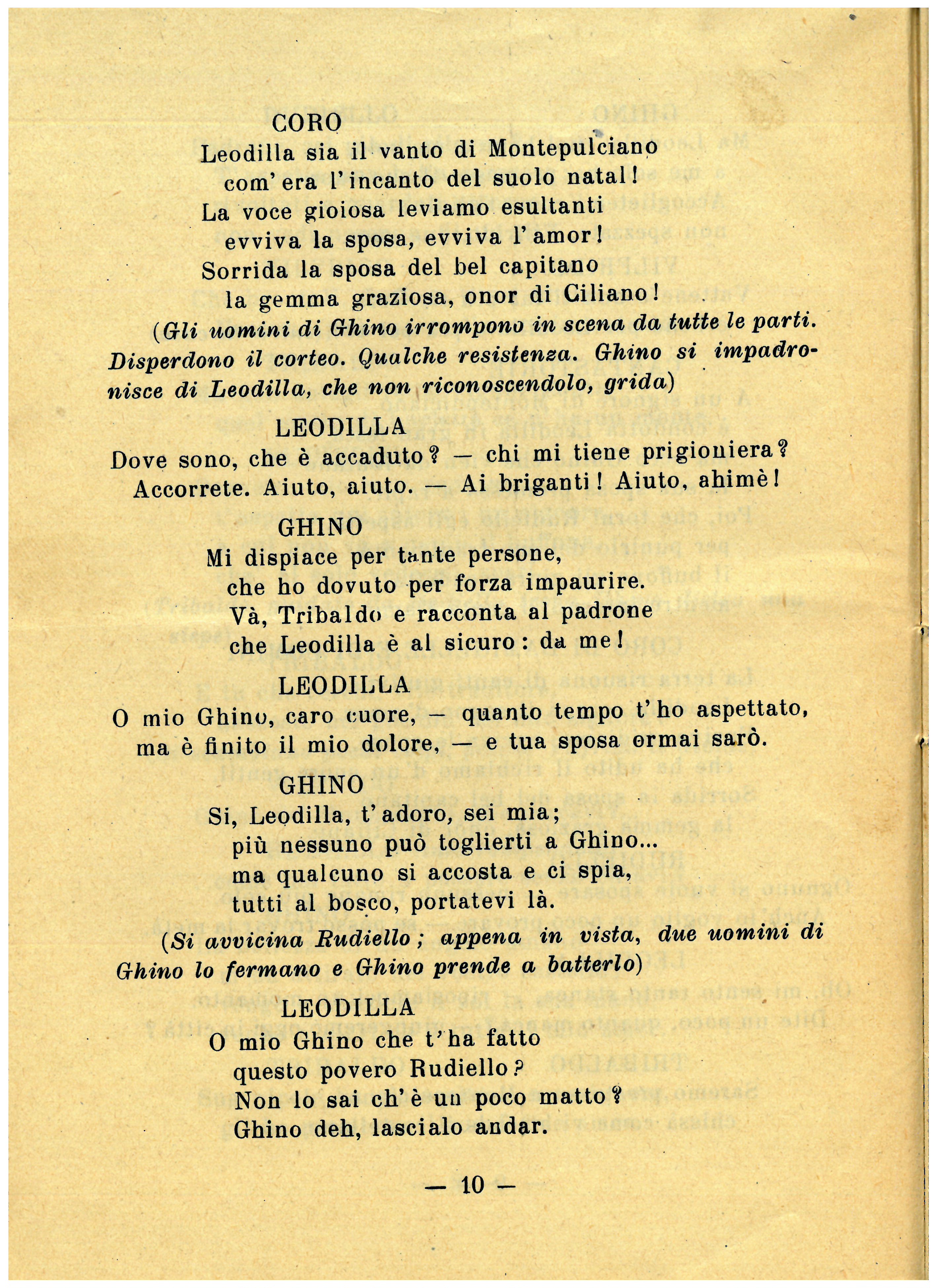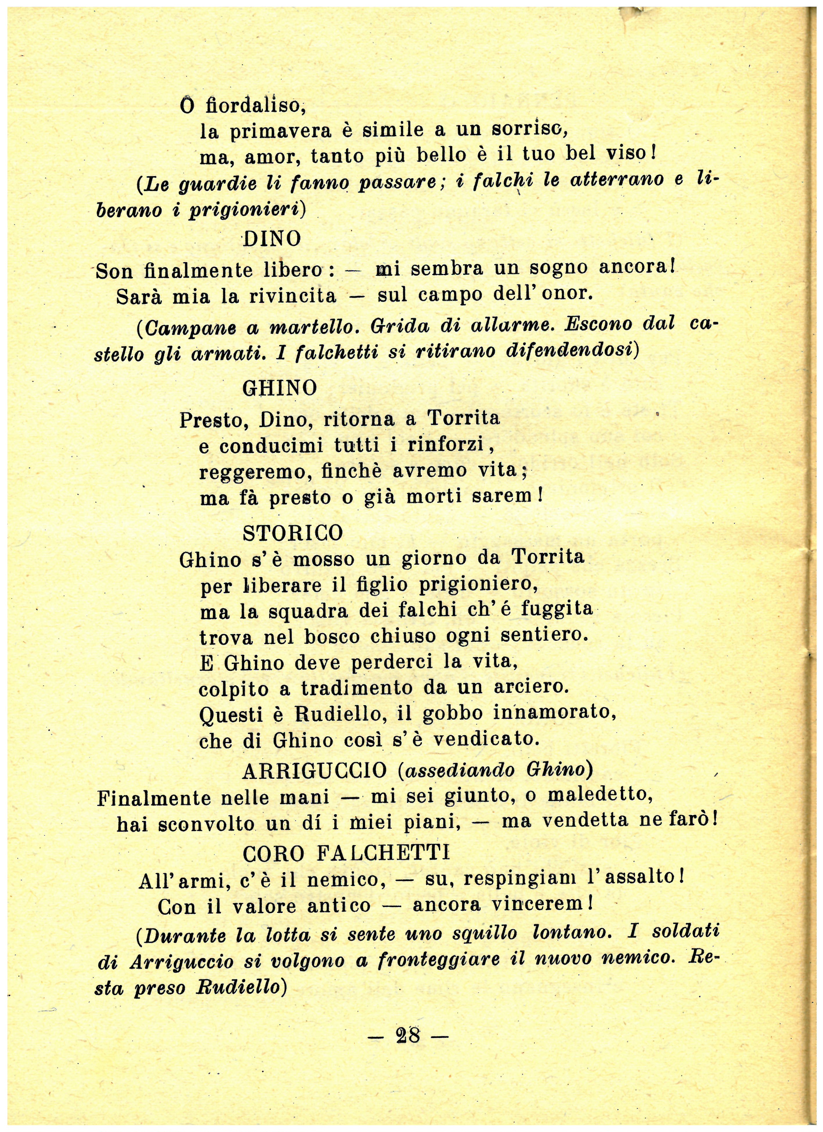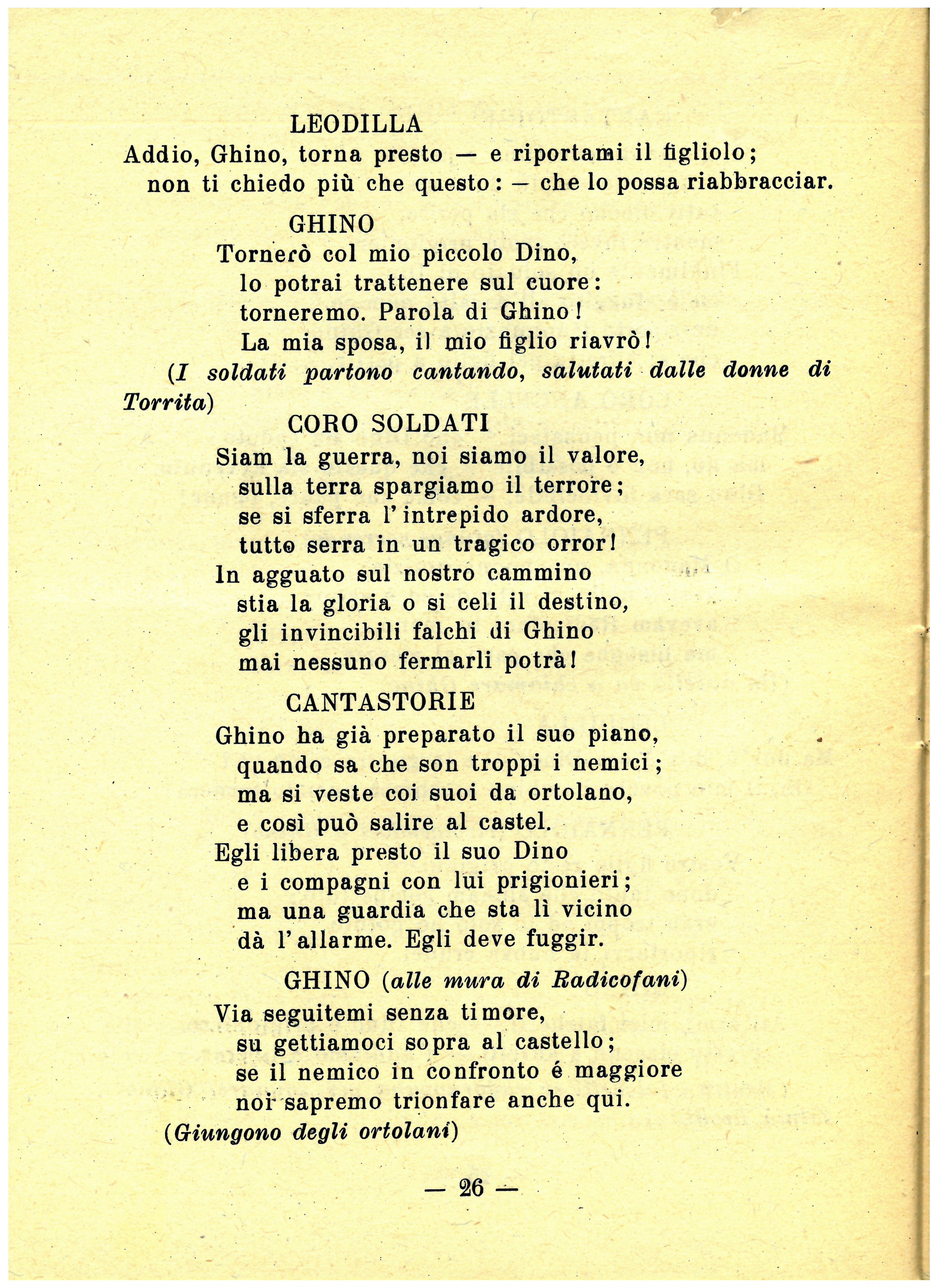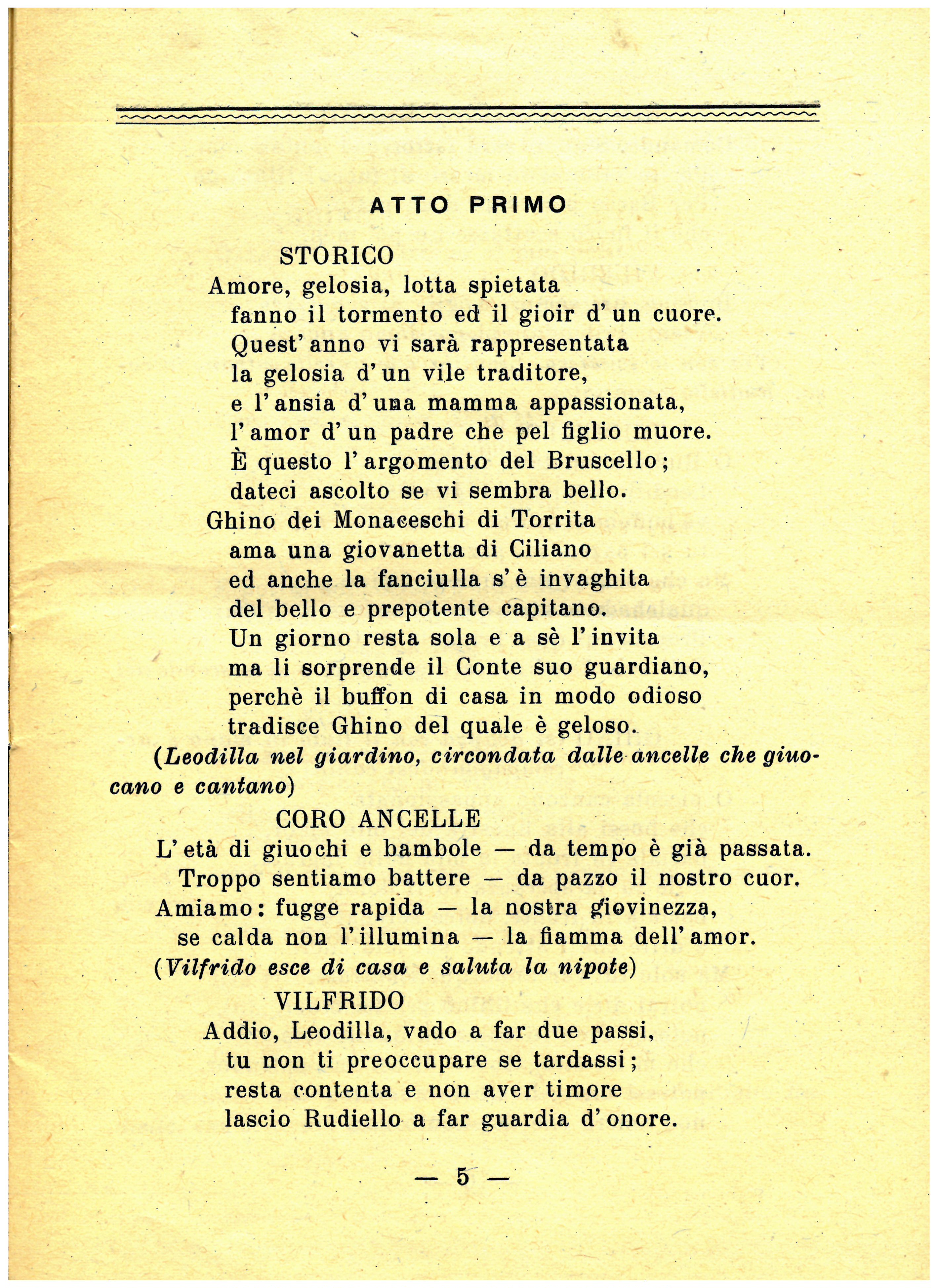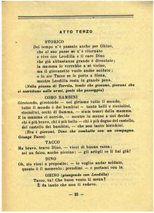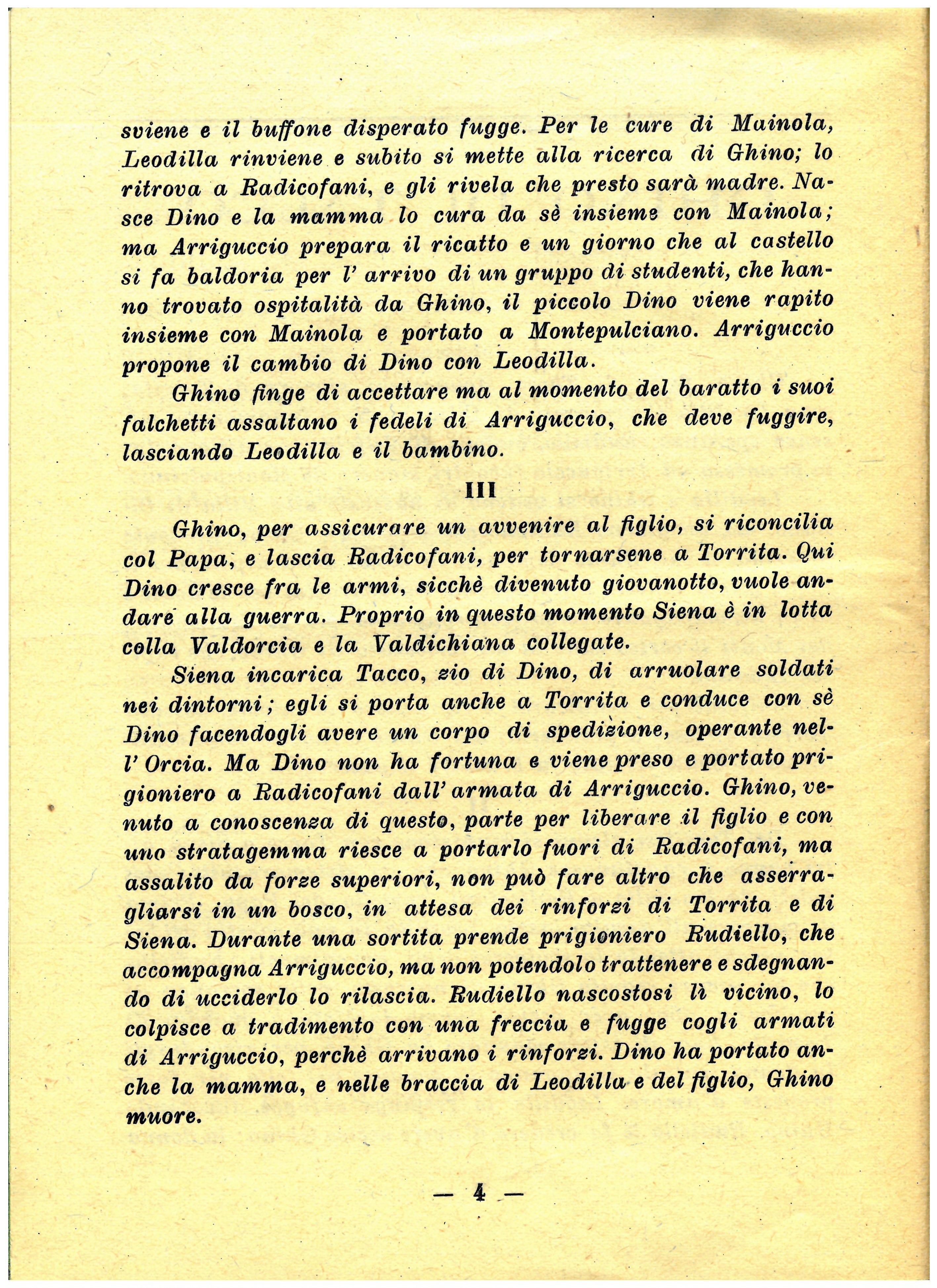 "Bruscello Poliziano 1948 "Ghino di Tacco" - Melodramma storico in 3 atti. Parole di Marcello Del Balio, musiche del Maestro Cav. Mario Gorlero", pubblicazione, s.d.