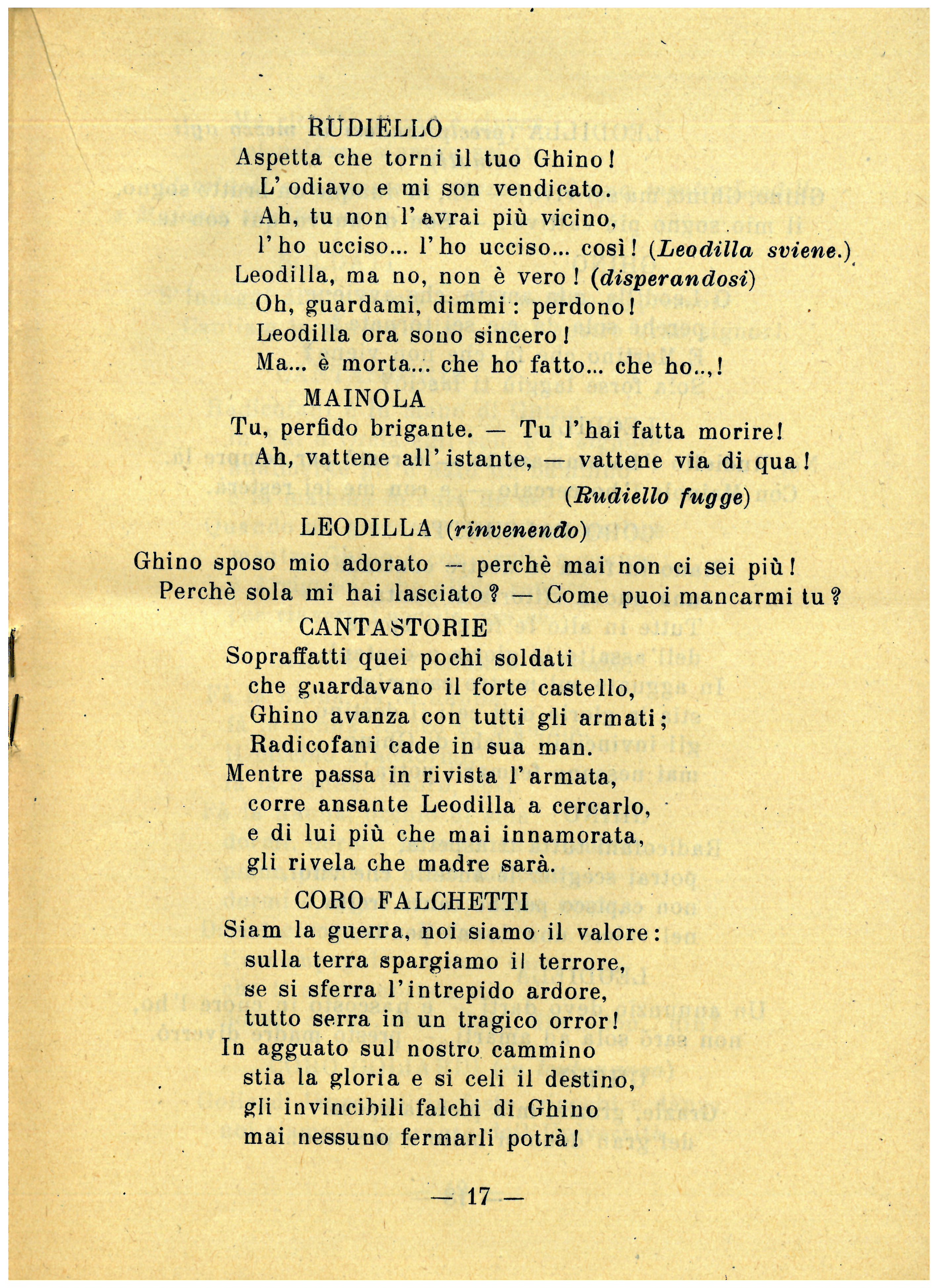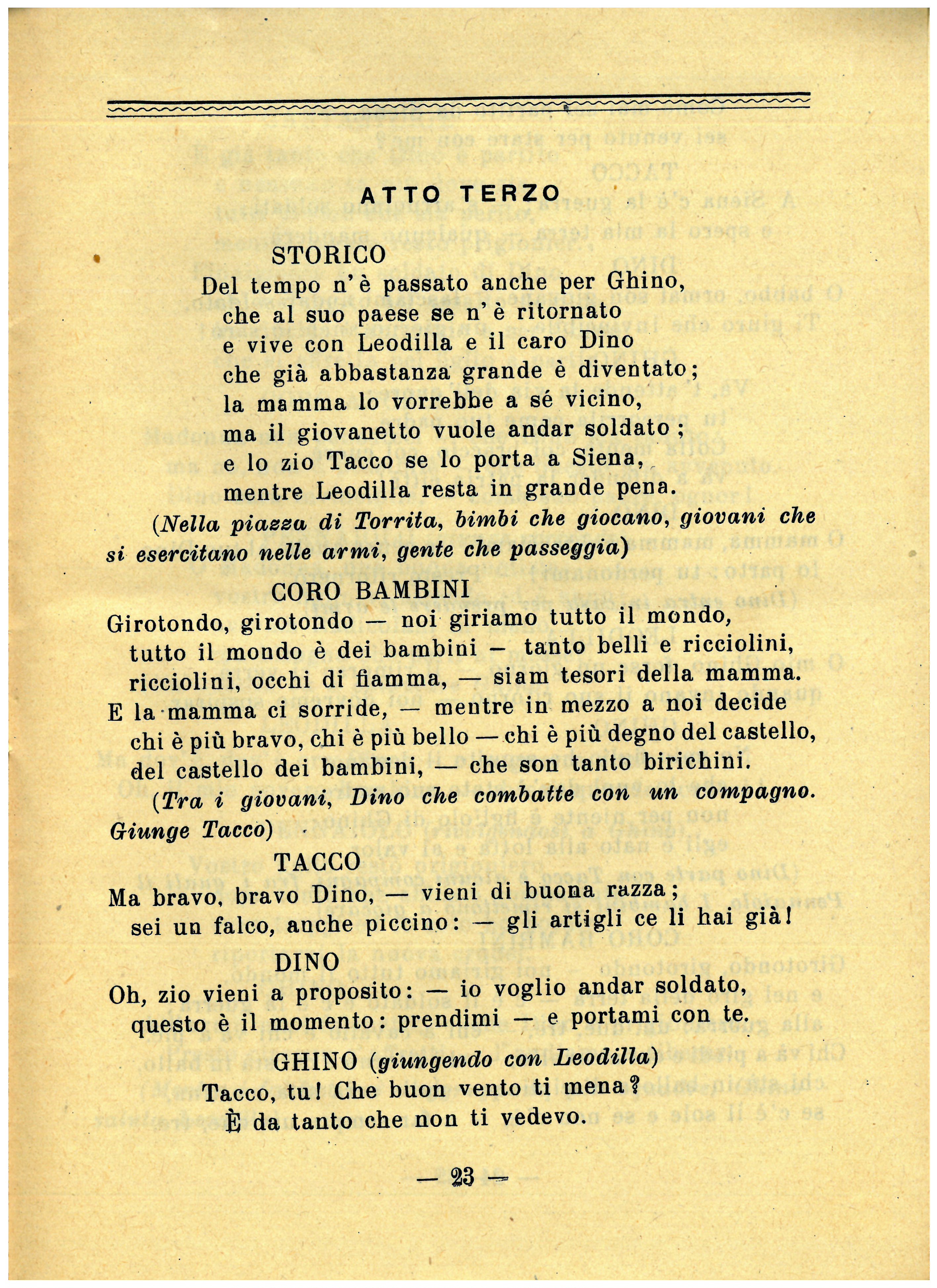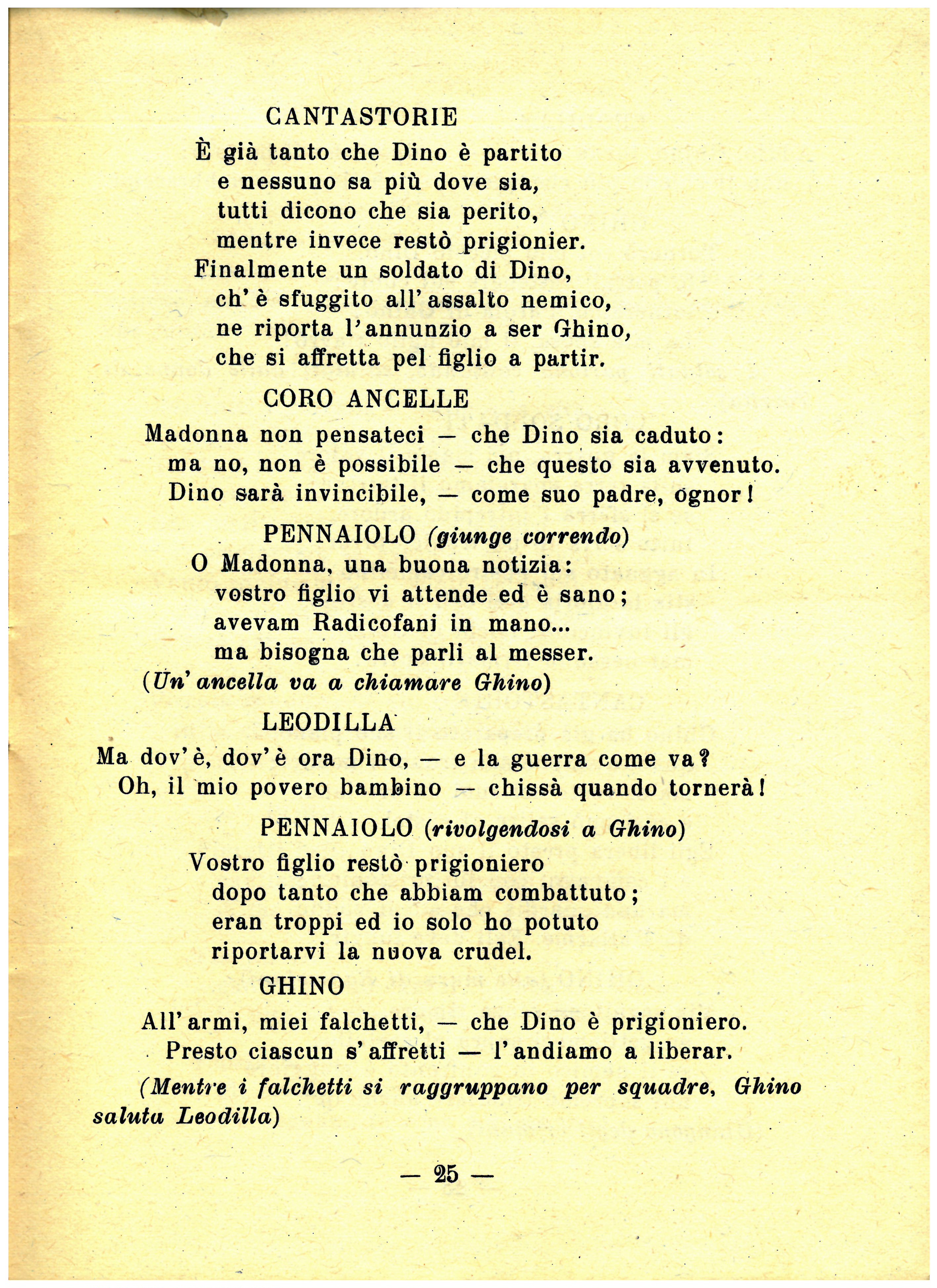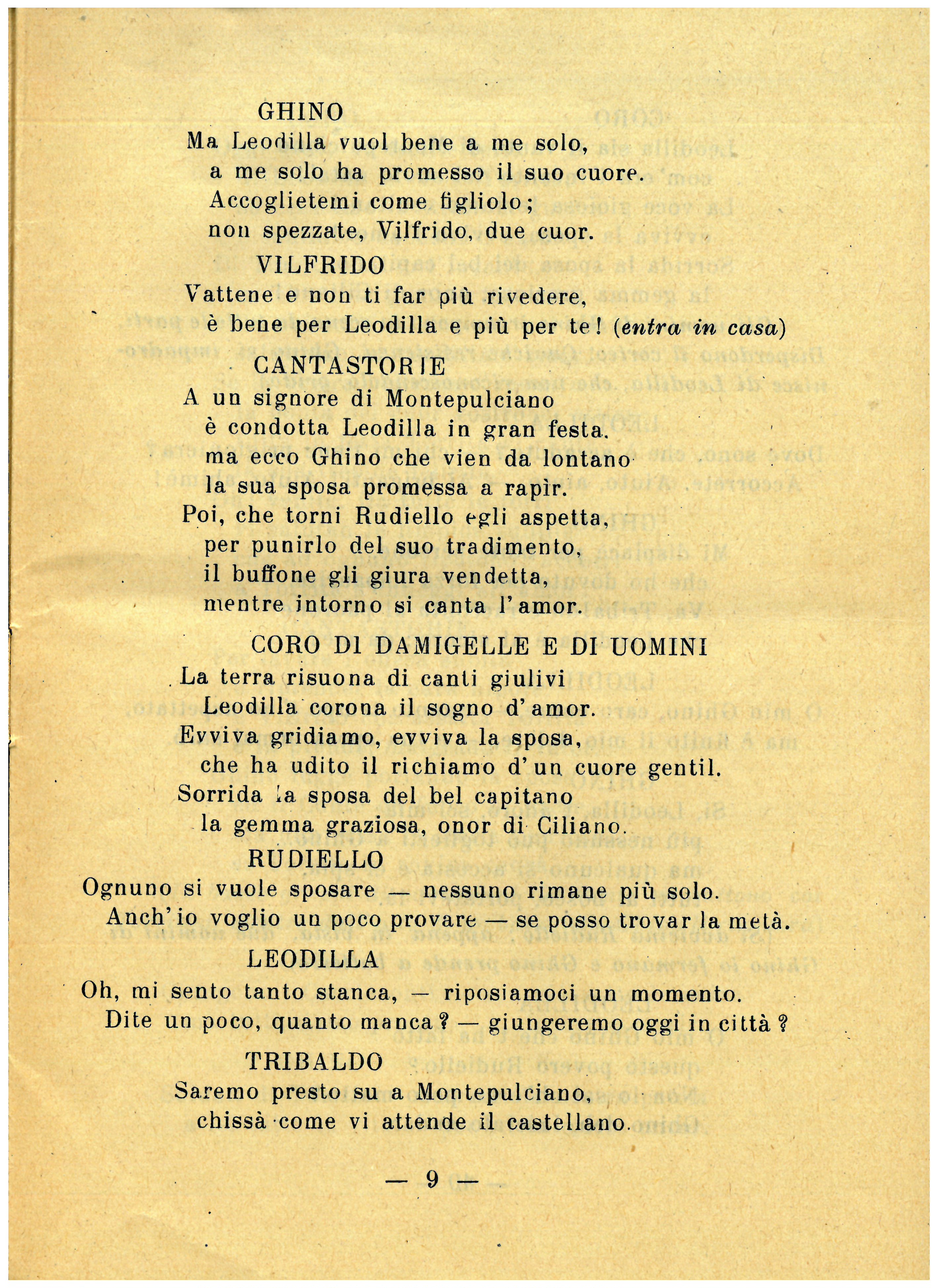 "Bruscello Poliziano 1948 "Ghino di Tacco" - Melodramma storico in 3 atti. Parole di Marcello Del Balio, musiche del Maestro Cav. Mario Gorlero", pubblicazione, s.d.