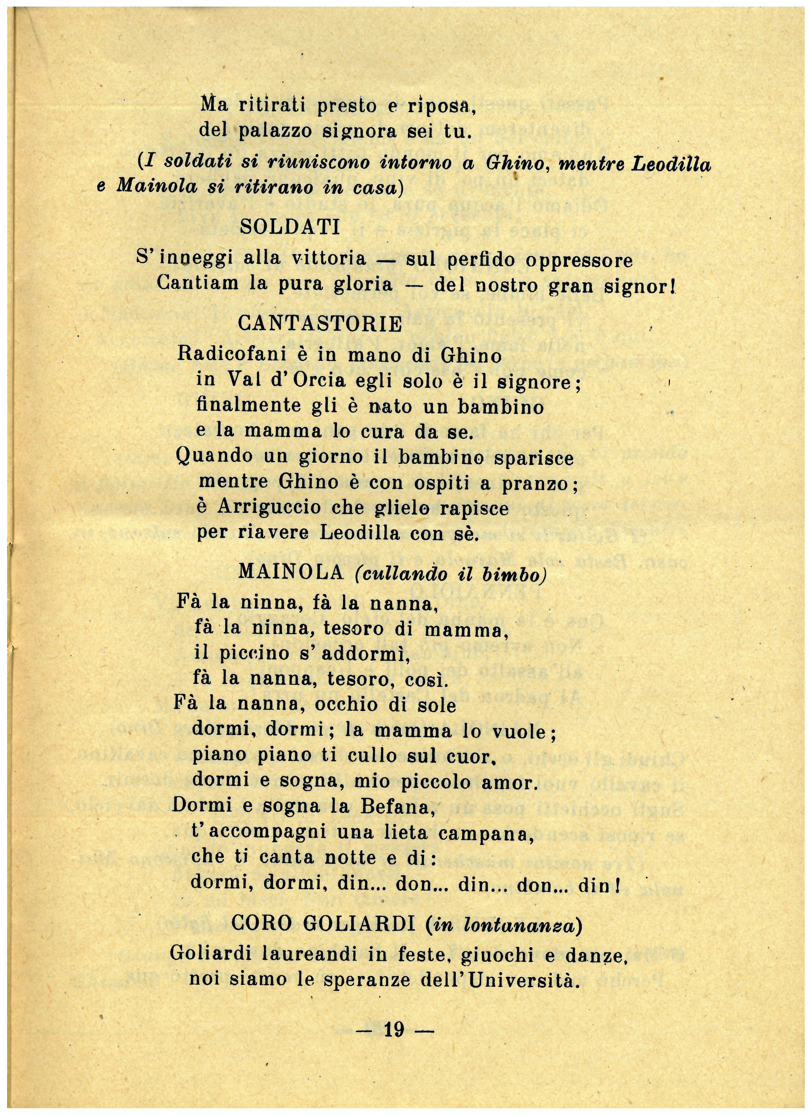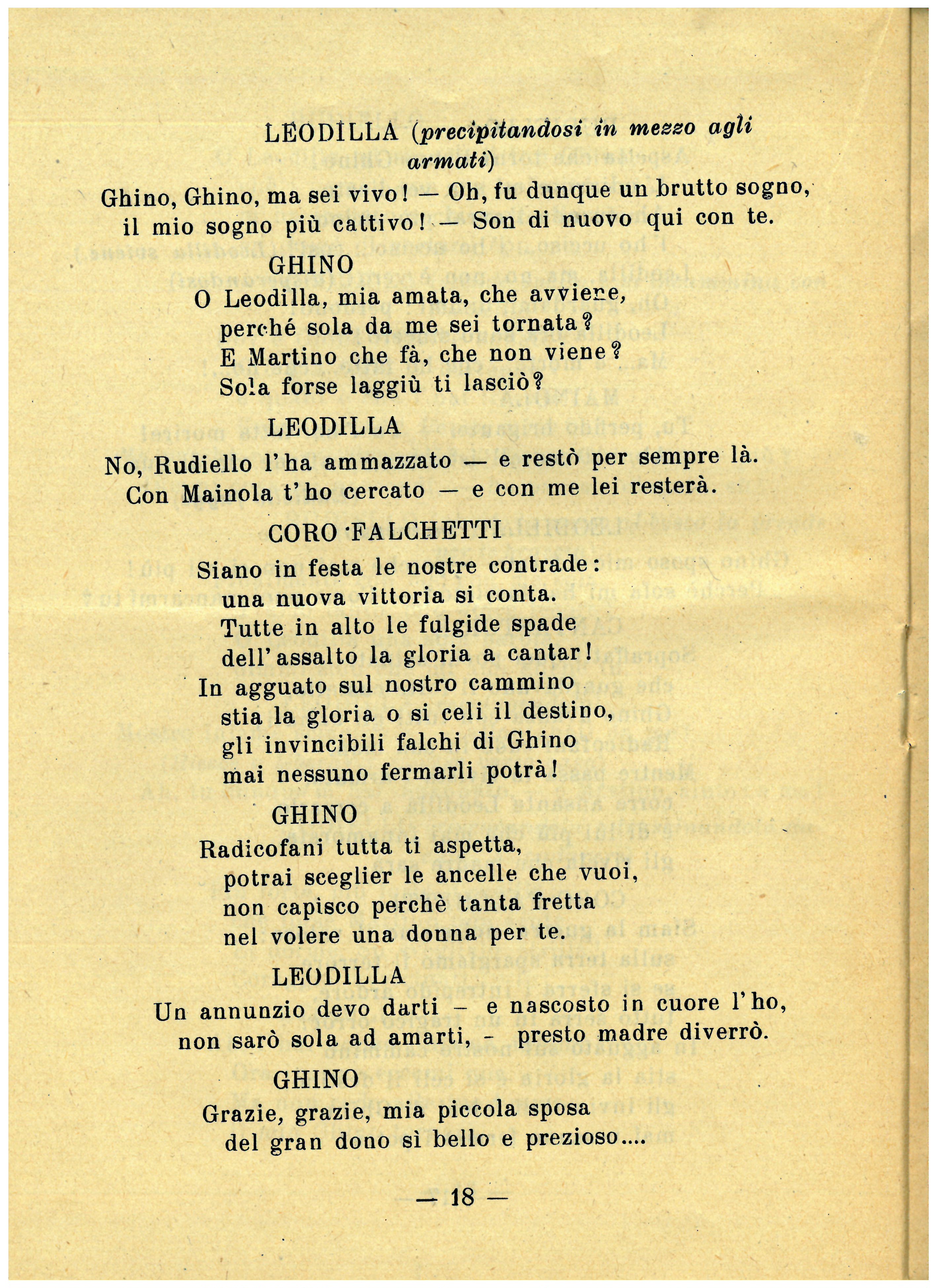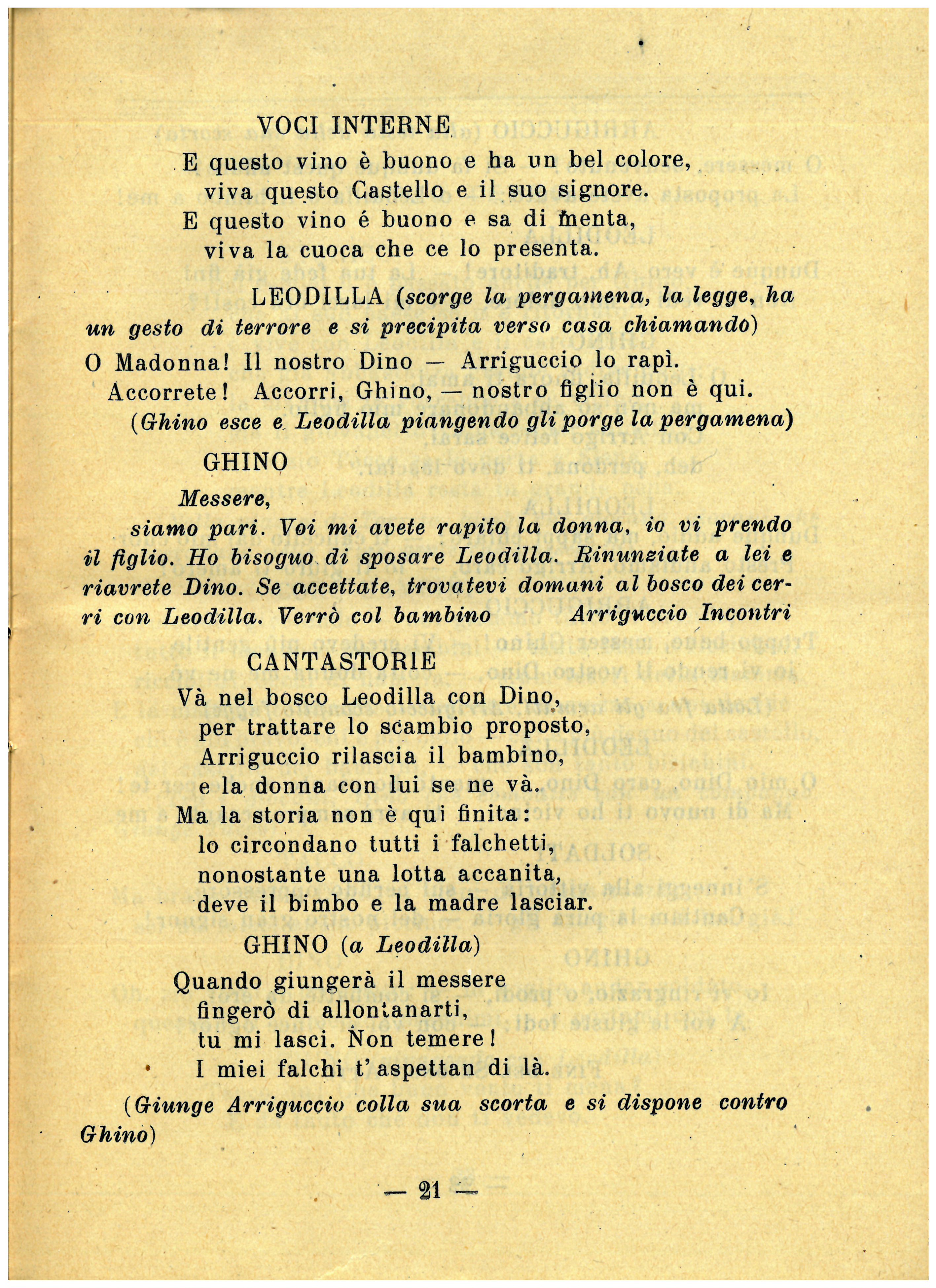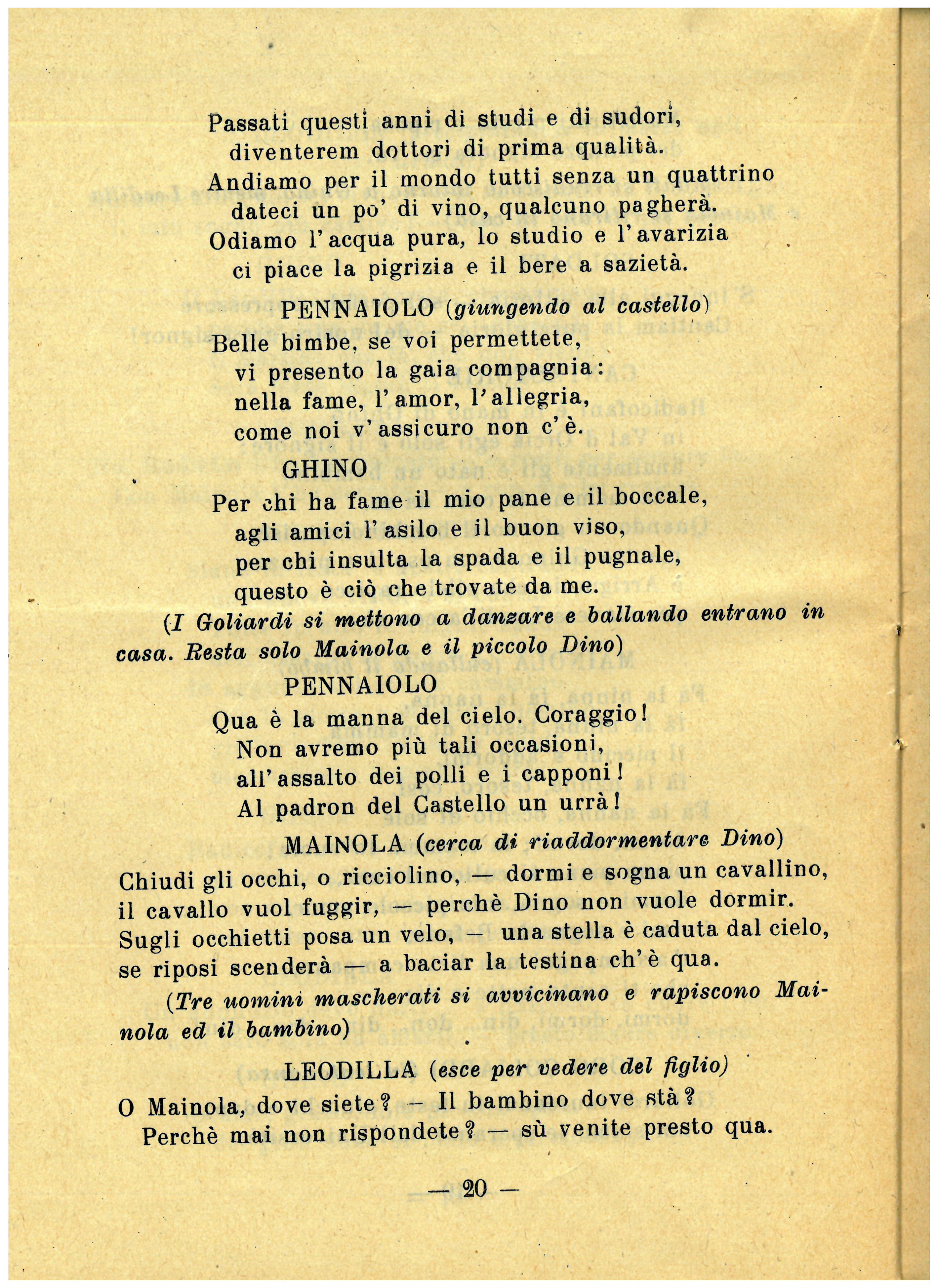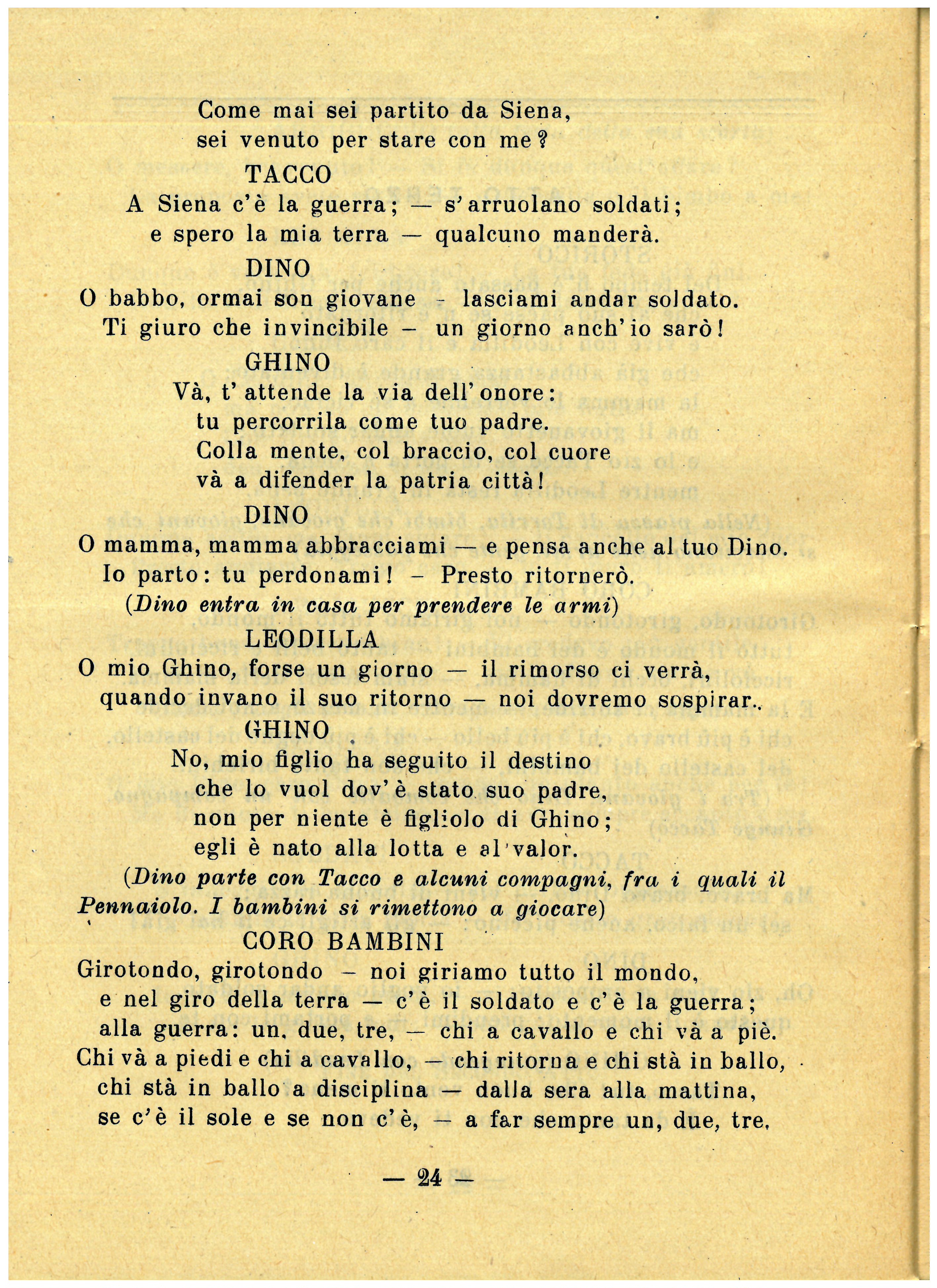 "Bruscello Poliziano 1948 "Ghino di Tacco" - Melodramma storico in 3 atti. Parole di Marcello Del Balio, musiche del Maestro Cav. Mario Gorlero", pubblicazione, s.d.