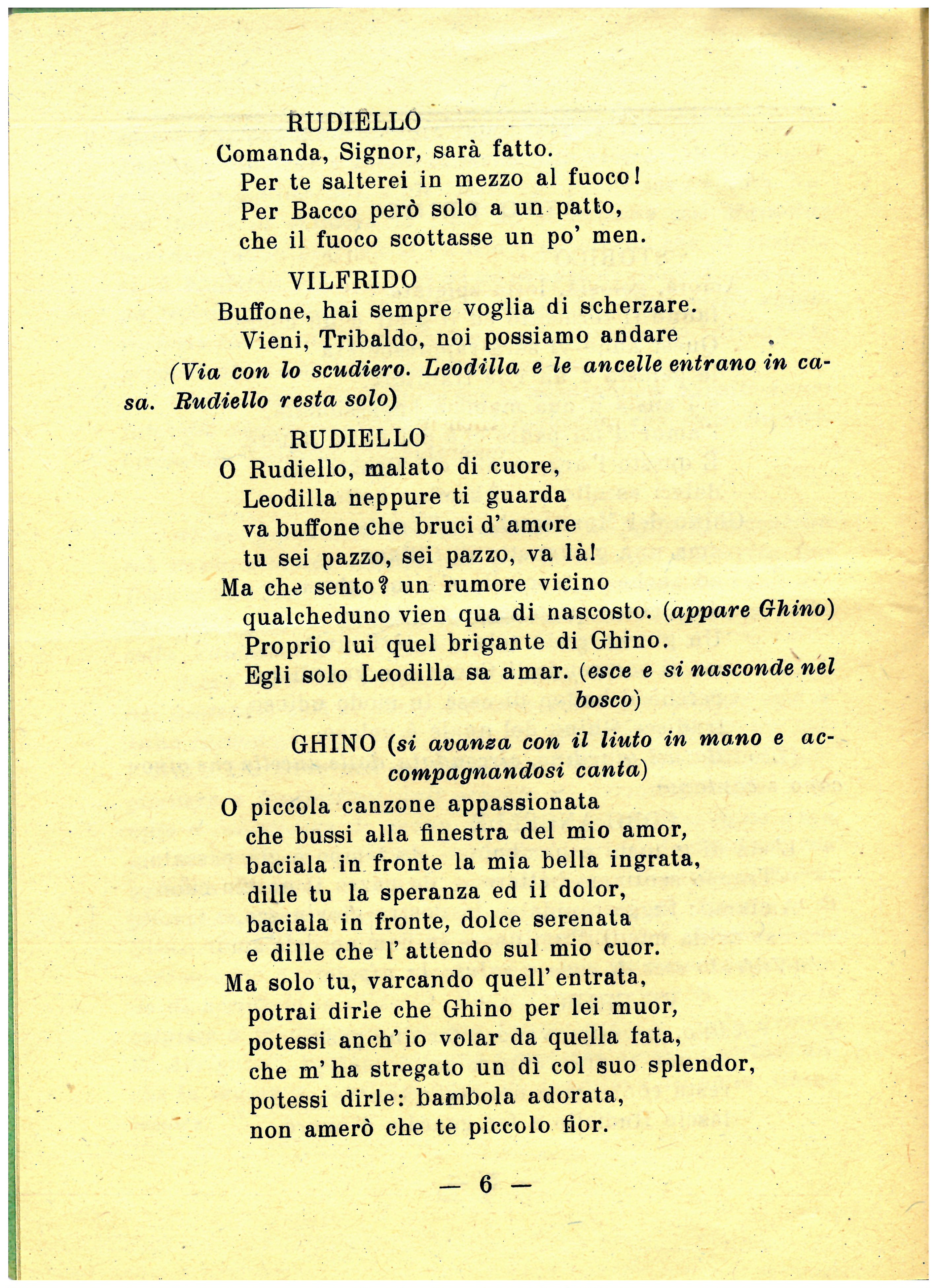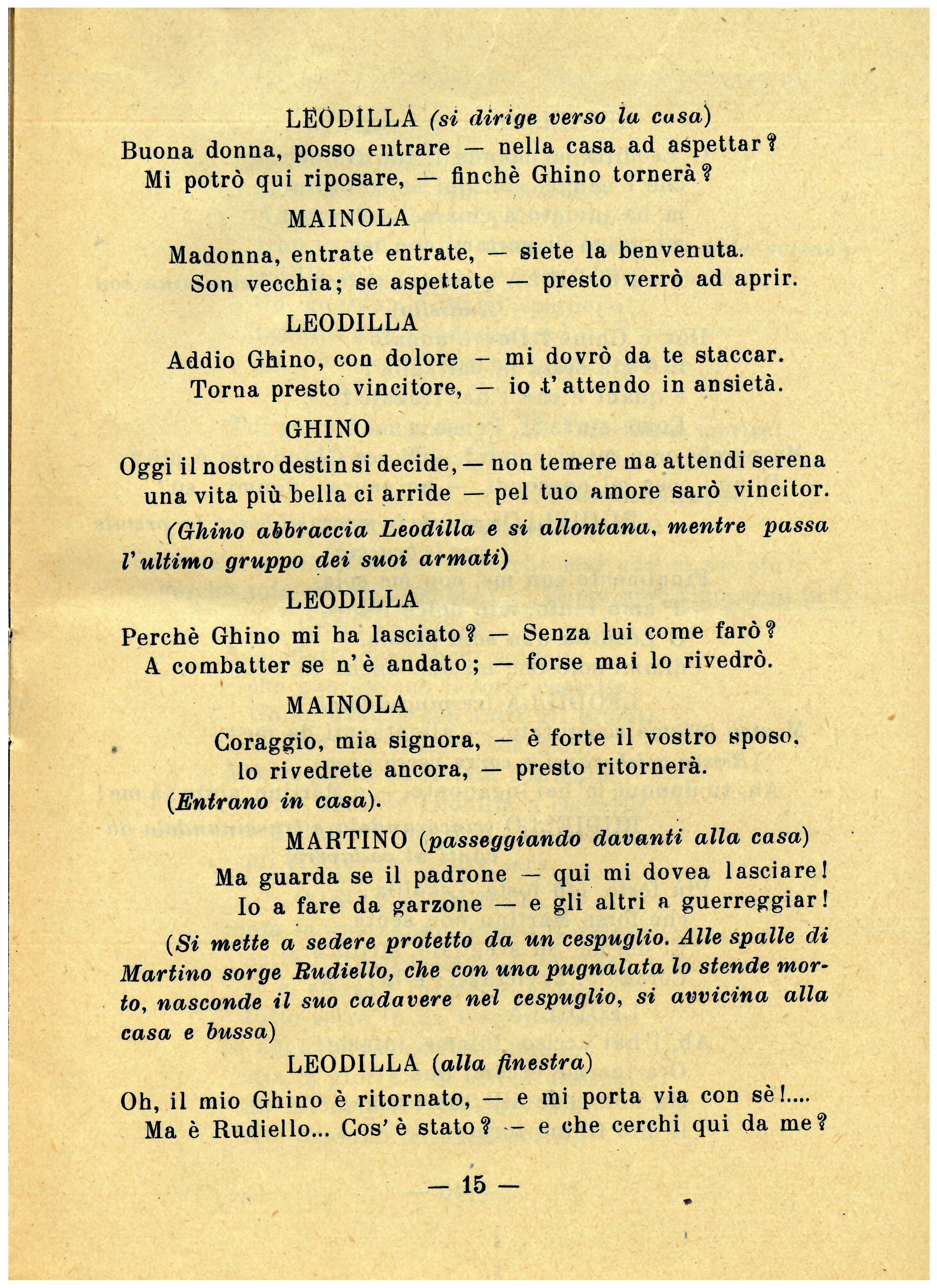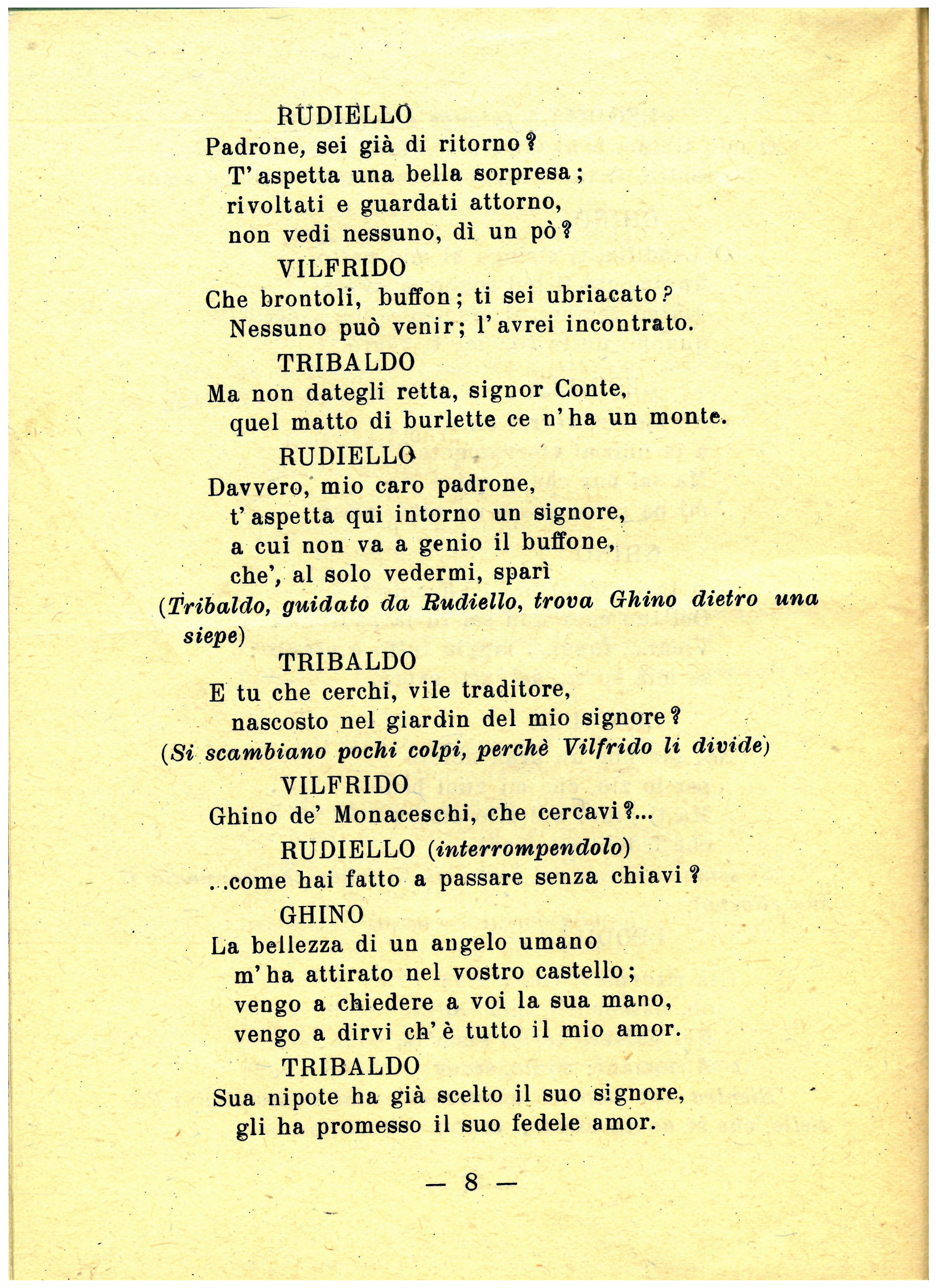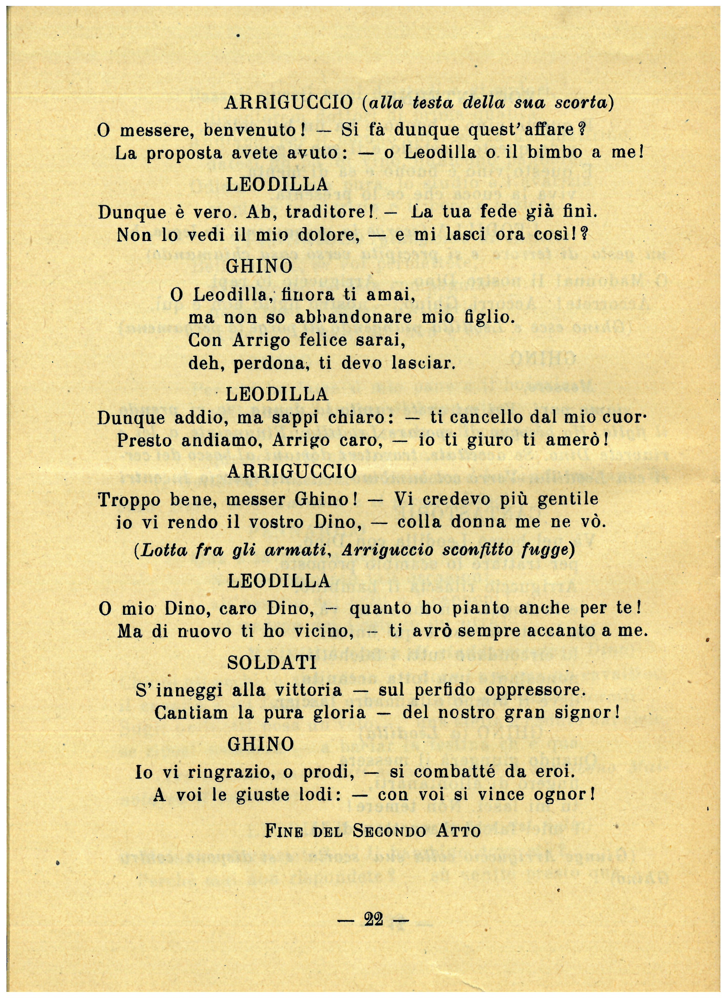 "Bruscello Poliziano 1948 "Ghino di Tacco" - Melodramma storico in 3 atti. Parole di Marcello Del Balio, musiche del Maestro Cav. Mario Gorlero", pubblicazione, s.d.