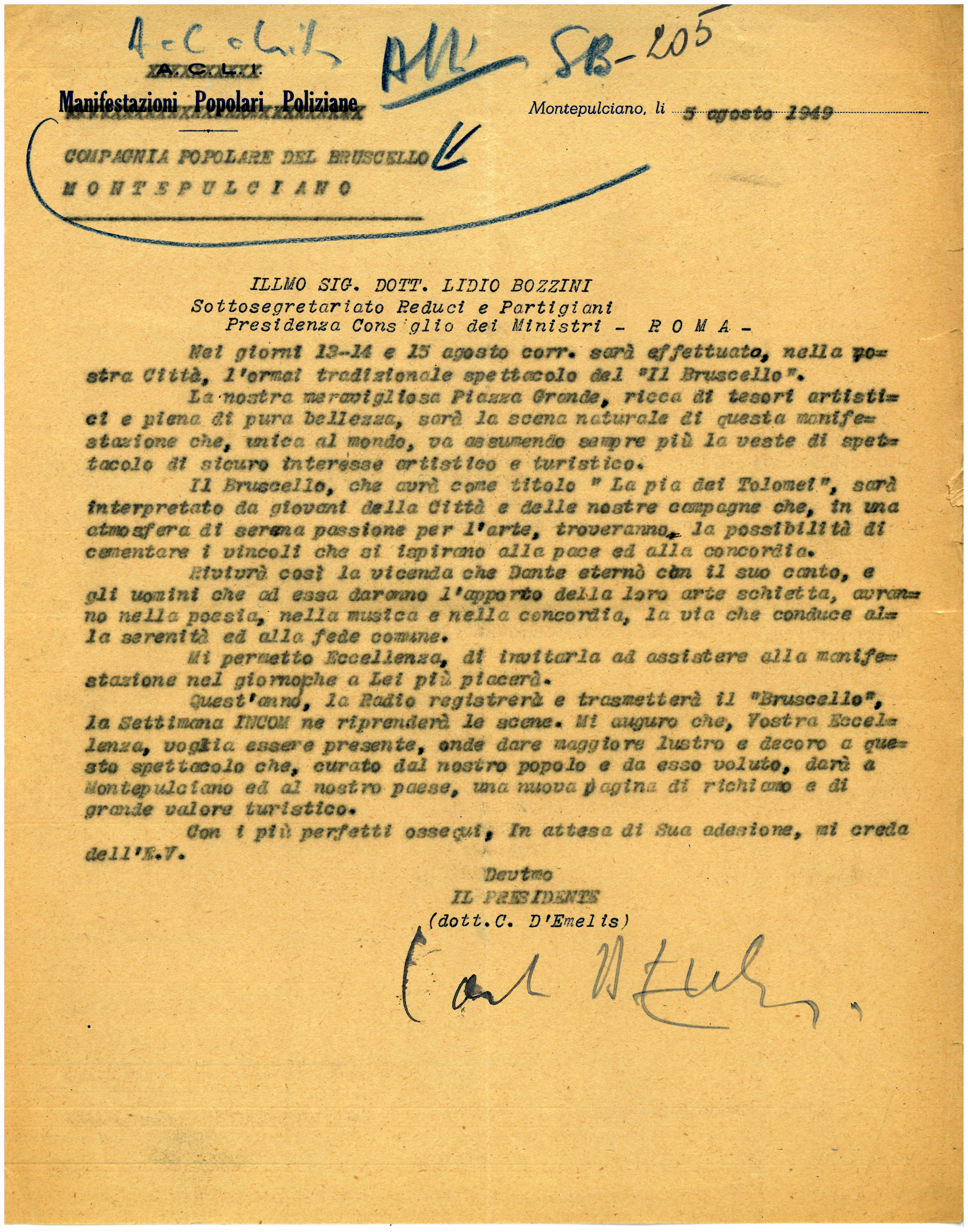 Serie 7 – Miscellanea (Fotografie, onorificenze, doc. personali, Bruscello, doc. di altre persone, in mortem)→ Documentazione relativa al Bruscello poliziano
