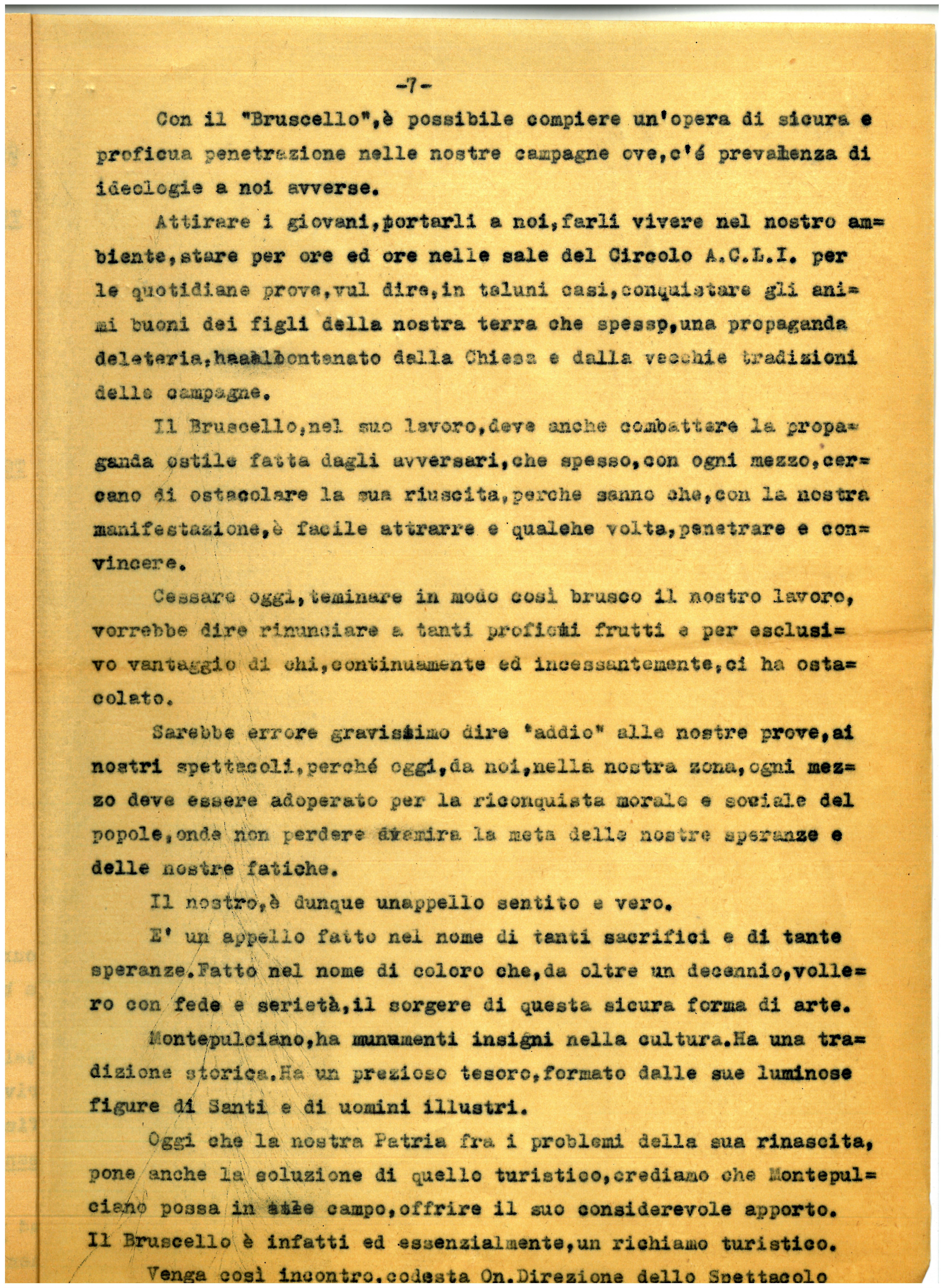 Serie 7 – Miscellanea (Fotografie, onorificenze, doc. personali, Bruscello, doc. di altre persone, in mortem)→ Documentazione relativa al Bruscello poliziano