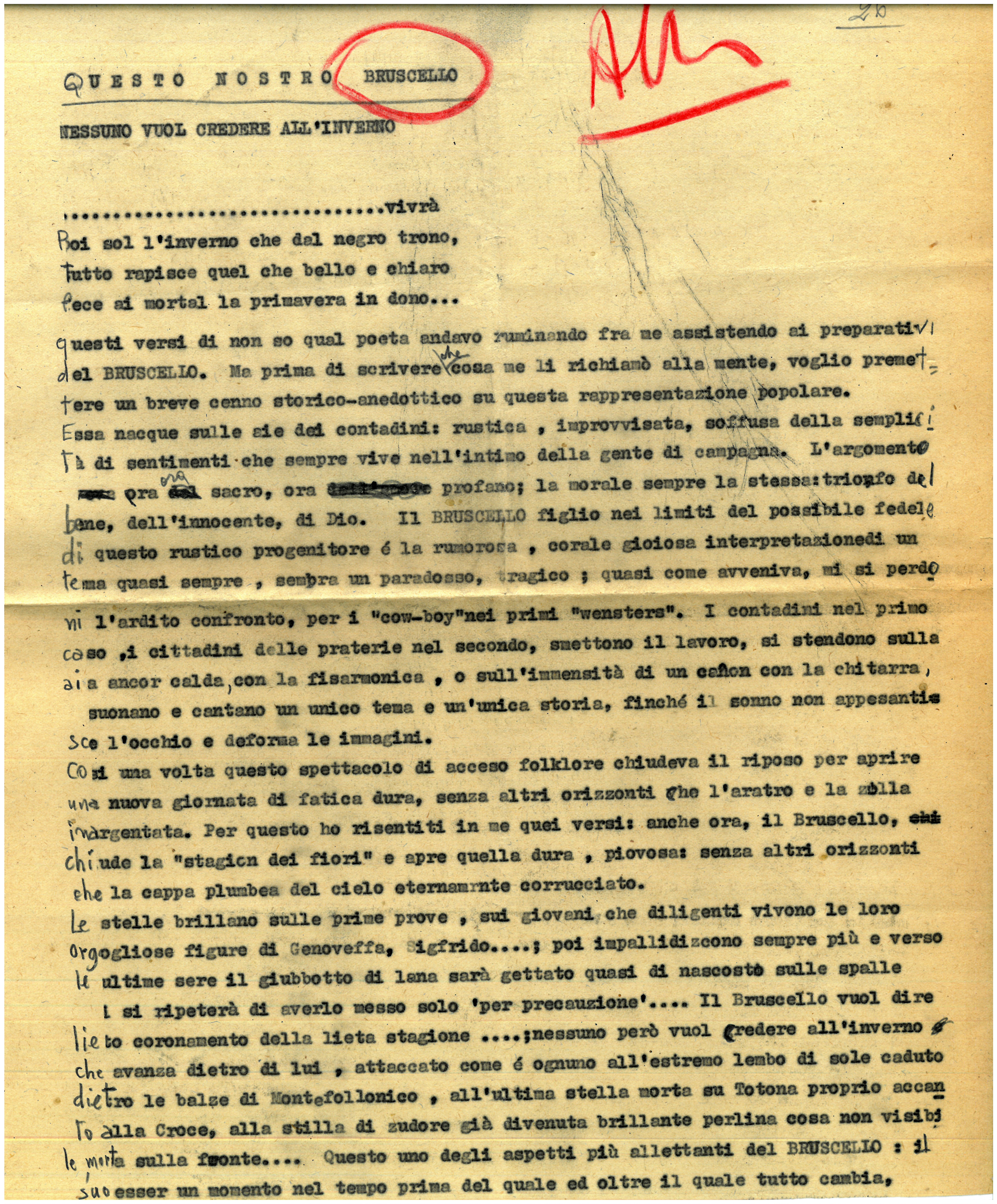 "Questo nostro Bruscello" a firma Franco Veccia, s.d.