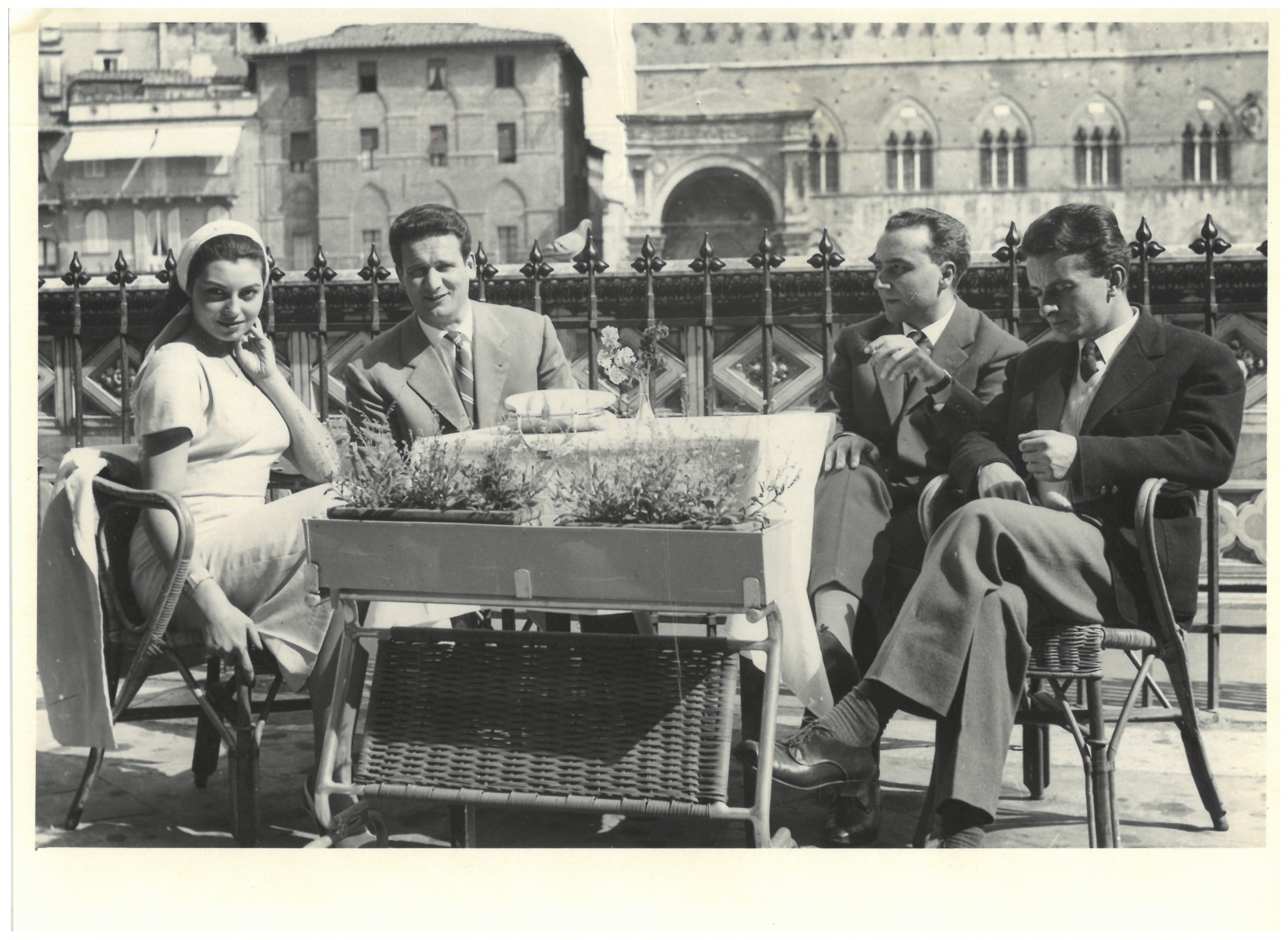 L.B., Rosanna Schiaffino ed altri due uomini n.i. in Piazza del Campo, b/n, s.d.