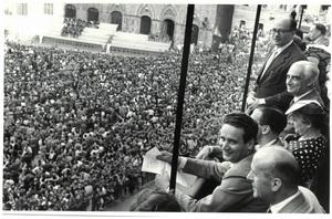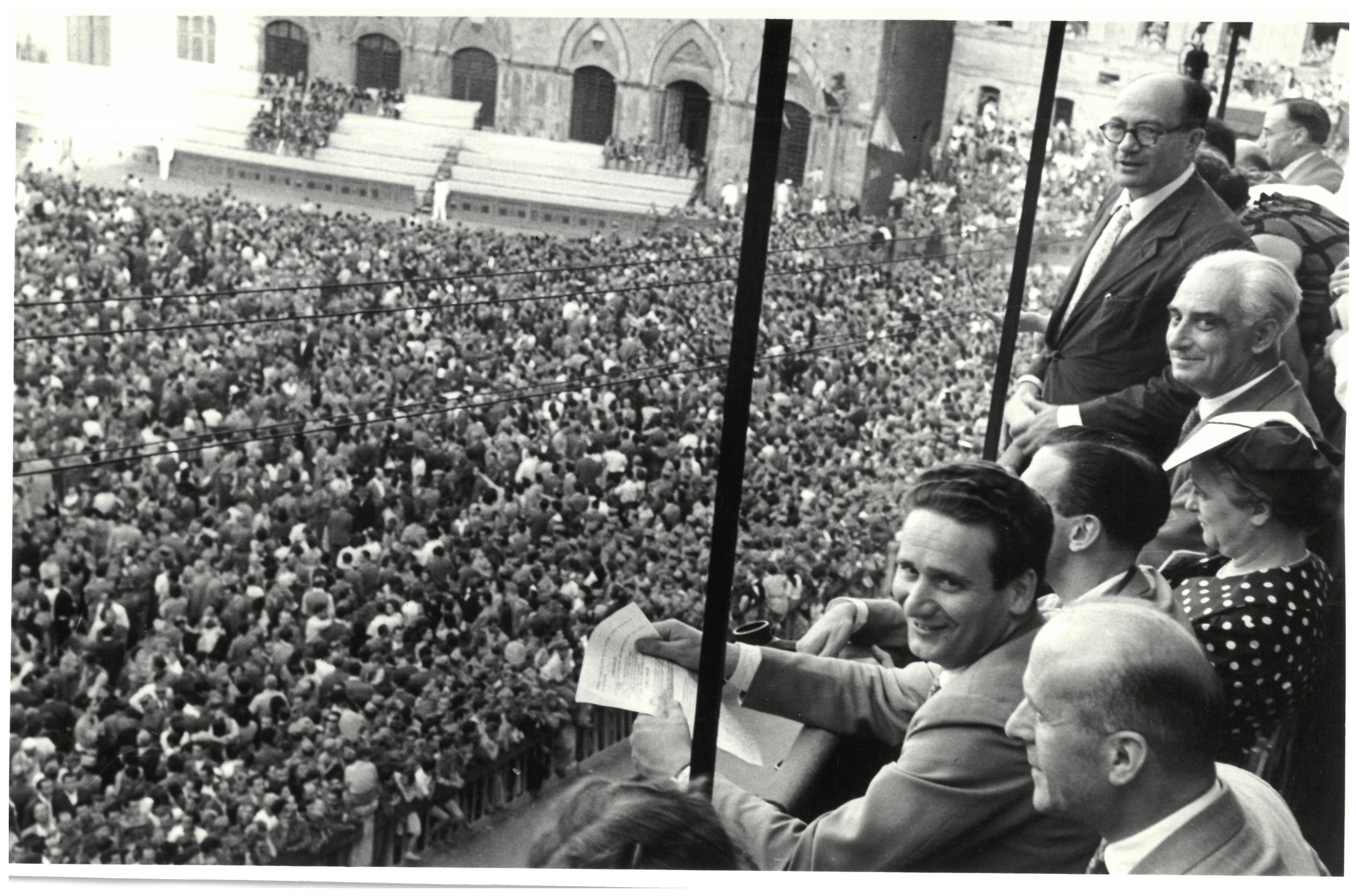 L.B. e il Ministro del Turismo Ponti durante il Palio di Siena, b/n, s.d.